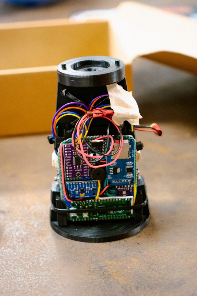 There are two sections of Sunny: the upper section, which holds the two UV sensors (detecting both UVA and UVB rays) positioned behind two UV transparent acrylic windows; and the lower section, which houses the rest of the electronics. This structure allows all of the electronics needed to operate the payload to be housed within the payload whilst remaining within the dimensions of a CanSat.