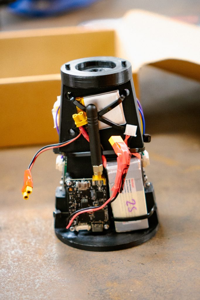 Here you can see the system being tested, with torque being manually applied to the system. This was done whilst it was on a test stand that left the RCS rotate freely so that its stabalisation effect could be monitored.